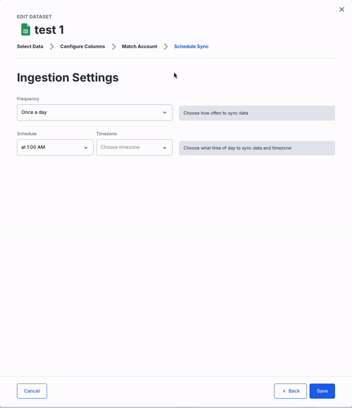 - Set the refresh time (once a day or multiple times per day) for the data sync.
